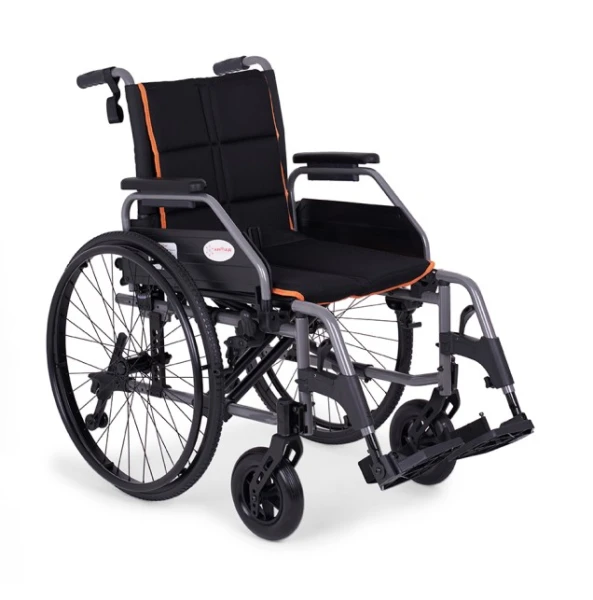 Кресло-коляска с ручным приводом Старт подходит для пользователей с различным уровнем активности, имеет комнатную и прогулочную модификации, а также выбор комплектов с дополнительными опциями и аксессуарами. Старт имеет складную модульную, крестообразную конструкцию трехтрубного исполнения. Кресло-коляска оснащена боковыми поддержками для верхней части корпуса, спинкой с регулировкой натяжения обшивки, ремнями на стопы, набором инструментов.