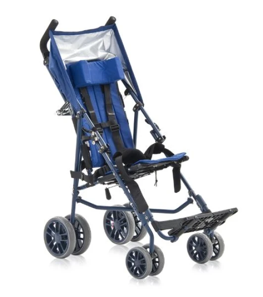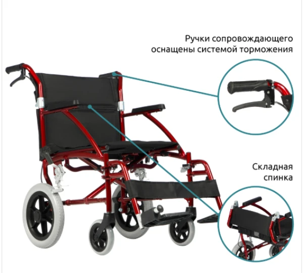 Кресло-коляска предназначена для передвижения в условиях помещений и на площадках с твёрдым покрытием. Конструкция выполнена из стали с полимерным покрытием, легко складывается/раскладывается без использования инструмента. Наклон спинки регулируется до горизонтального положения. В комплекте прилагаются: подголовник, форма которого обеспечивает боковую поддержку, и дополнительная секция спинки, увеличивающая ее высоту до 78см.