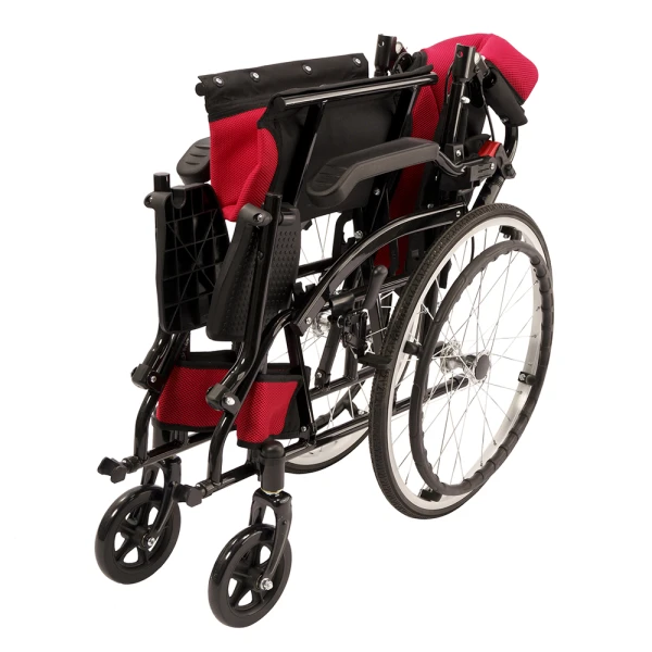 Кресло-коляска Barry D6 – это идеальный баланс легкости, компактности и продуманного функционала для комфортного передвижения в домашних условиях. Ее складная стальная рама обеспечивает надежность при впечатляюще малом весе всего 13,5 кг. В сложенном виде коляска поражает своей компактностью – ширина всего 27 см, что делает хранение и транспортировку невероятно простыми.