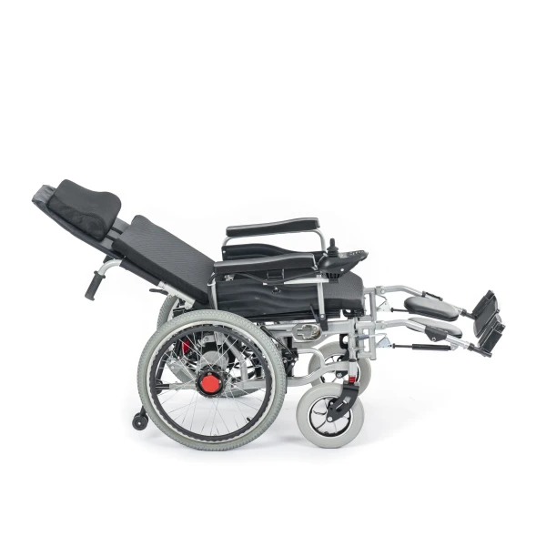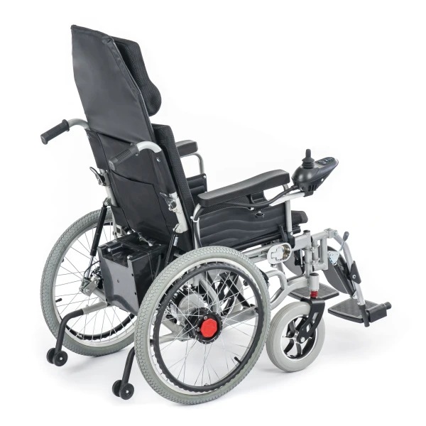 Главная особенность этой коляски - возможность длительного пребывания лежа или полулежа. Теперь для отдыха человеку не обязательно просить о помощи и пересаживаться в кровать, он самостоятельно может откинуть спинку, поднять изножья вздремнуть. Кресло-коляска электрическое оборудовано задним приводом, реализованным в виде двух независимых электромоторов на безугловом редукторном соединении с ведущими колёсами. Такой тип электропривода наиболее надёжен и прост в обслуживании.