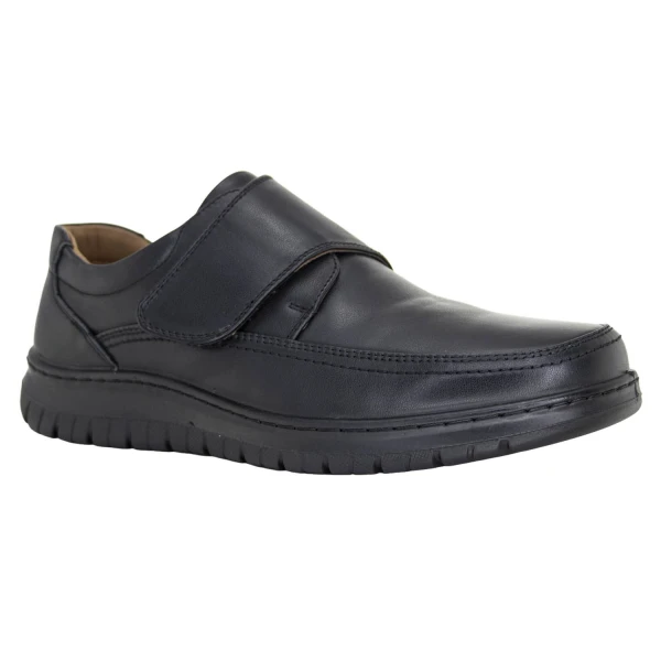 Ортопедическая модель из натуральной кожи на широкой подошве с закругленным носом и двойной регулировкой с помощью липучек. Застежка Velcro гарантирует легкое надевание и регулирует фиксацию обуви на стопе. Материал подошвы ТЭП поглощает ударные нагрузки, повторяя естественное движение стопы при ходьбе. Индивидуальная ортопедическая стелька изготавливается с учетом анатомических особенностей и стато-динамических нарушений клиента для поддержки стопы на каждом этапе шага.