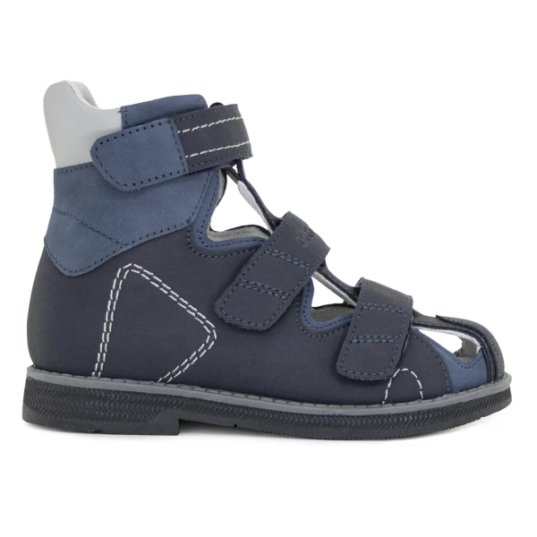 Ортопедические сандалии для лечения и коррекции плоскостопия и плоско-вальгусной установки стоп. Уникальная колодка разработана специалистами ООО Аквелла (представители торговой марки Артемон) и ведущими ортопедами России, на основании более 3 тысяч обмеров стоп детей. Высокий жесткий внутренний задник изготовлен из термопластичных материалов, надежно фиксирует пятку и голеностопный сустав. Застежка-липучка Велькро позволяет зафиксировать ступню в правильном положении и исключает заваливание стопы во внутрь