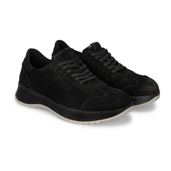 Модель из натуральной замши итальянского производства подойдет для сухой осени. Обувь будет удобна при долгой ходьбе, так как не сдавливает ногу и надежно фиксируют ее в анатомически правильном положении. Стелька с покрытием из микрофибры дополнена каплевидным пелотом для ортопедической поддержки продольного и поперечного сводов стопы.