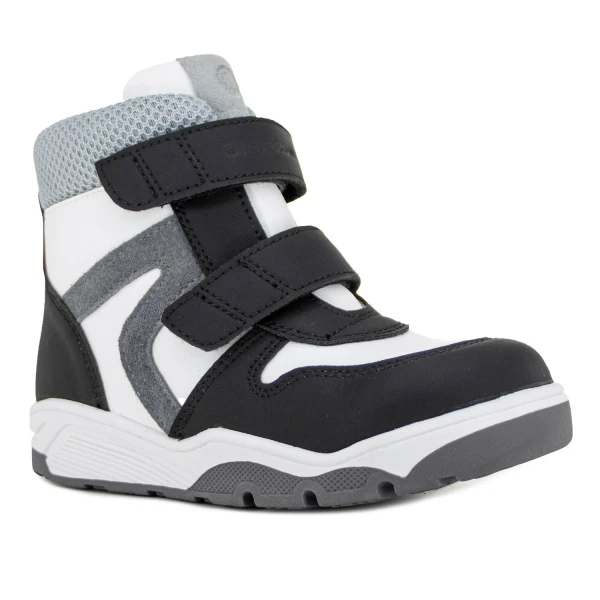 Изготовлены по ортопедической колодке с анатомическим профилем. Съемная стелька препятствует развитию плоскостопия. Высокий берц исключает формирование вальгусной или варусной установки пяточной кости. Мягкий кант обеспечивает комфорт при ходьбе. Застежки-контакт гарантируют плотную и надежную фиксацию. Широкая раскрываемость и легкость надевания. Изготовлены из натуральных материалов. Ботинки сложные ортопедические для детей изготавливаются по индивидуальным обмерам с подгонкой колодки и слепкам.