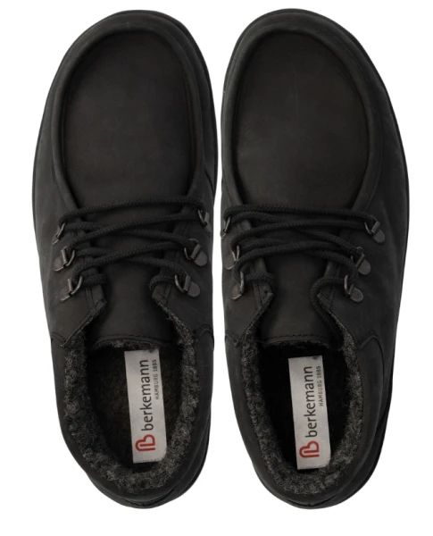 Мужские ортопедические ботинки из натуральной чёрного нубука Oskar — удобная обувь от немецкого бренда Berkemann. Изделие прекрасно подойдет для морозов — толстая рельефная подошва защитит ноги от замерзания и скольжения. Подкладка состоит из натуральной шерсти — материал дарит ногам сухое тепло, отводит излишки влаги и позволяет коже дышать.