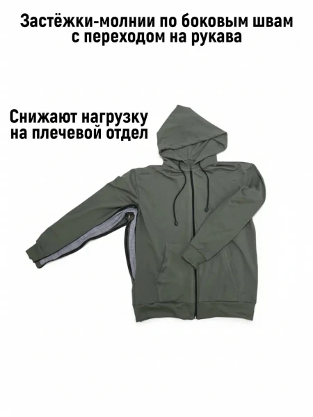Мужской летний адаптивный костюм (кофта на молнии+брюки) для инвалидов предназначен для повседневного использования для людей перенесших травмы, хирургические операции, а также заболевания верхних и нижних конечностей.