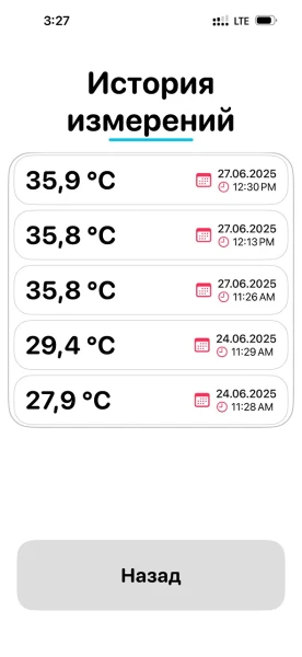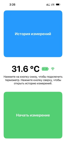 4. Запустить приложение, воспользоваться речевыми инструкциями мобильного приложения. Дождаться нагрева термометра до 33 градусов. Прибор включится автоматически и начнёт измерение.