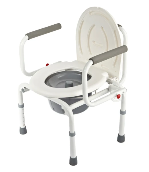 Кресло-туалет 10580 обладает складной конструкцией из стали. Съемное ведро, крышка и подлокотники выполнены из практичного гигиенического пластика. Для максимального комфорта в использовании высота сиденья регулируется по высоте. Данная модель кресла-туалета очень мобильна – легко складывается и не занимает много места. Может использоваться также как насадка на унитаз или поручень). Модель обладает регулируемыми по высоте ножками с резиновым наконечниками. Максимальная нагрузка - 115 кг.